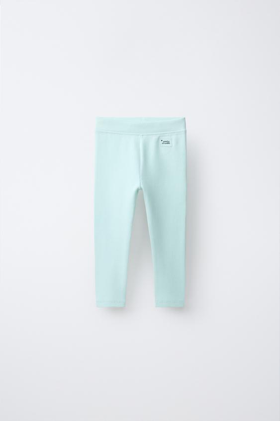 ZARA ЛЕГИНСЫ В РУБЧИК С НАШИВКОЙ, ЦВЕТ МОРСКОЙ ВОЛНЫ