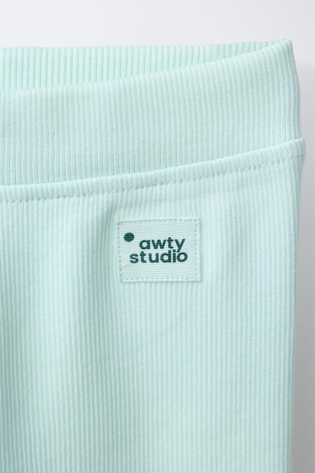 Легинсы в рубчик с эластичным поясом и нашивкой спереди.