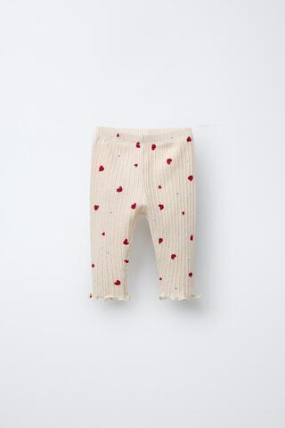 ZARA ЛЕГИНСЫ В РУБЧИК С ПРИНТОМ «СЕРДЦА», СВЕТЛЫЙ ЭКРЮ