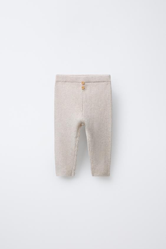 ZARA ЛЕГИНСЫ В РУБЧИК С ПУГОВИЦАМИ, СВЕТЛО-БЕЖЕВЫЙ