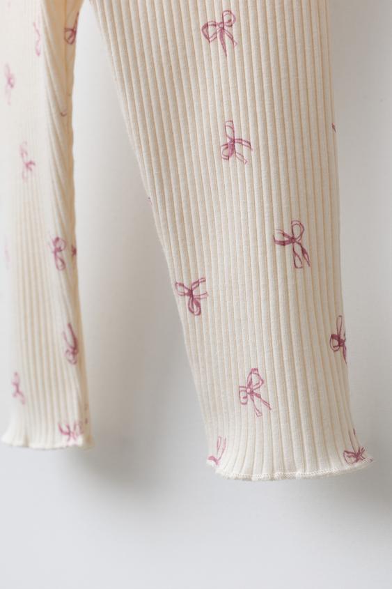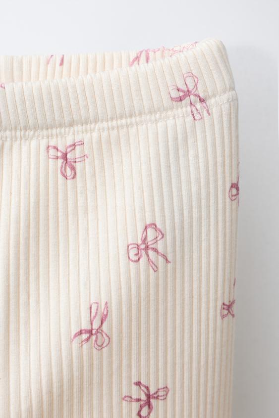ZARA ЛЕГИНСЫ В РУБЧИК SOFT TOUCH С БАНТАМИ, ЭКРЮ