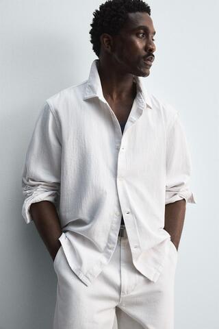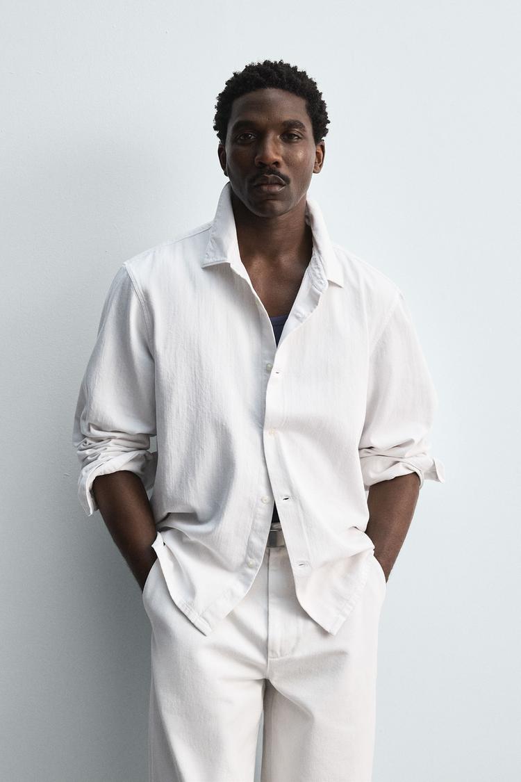 ZARA ЛЕГКАЯ ДЖИНСОВАЯ РУБАШКА LIMITED EDITION, ЖЕЛТОВАТО-БЕЛЫЙ