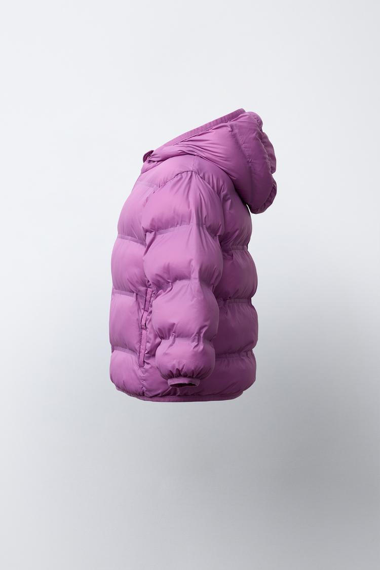 ZARA ЛЕГКАЯ СТЕГАНАЯ КУРТКА С КАПЮШОНОМ, ТЕМНАЯ МАЛЬВА