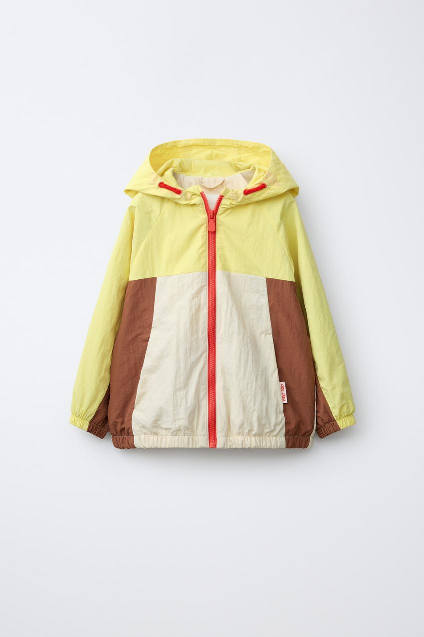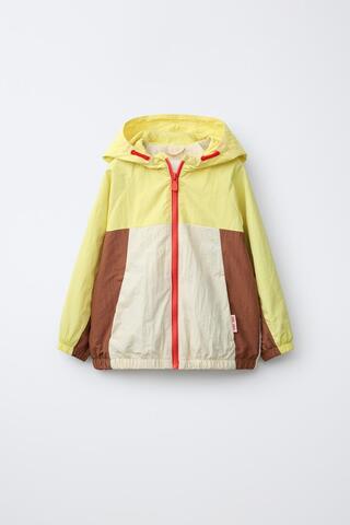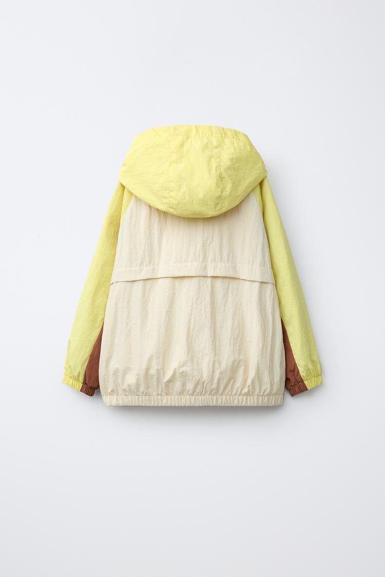ZARA ЛЕГКИЙ ДОЖДЕВИК В СТИЛЕ КОЛОР-БЛОК, ЭКРЮ/ЖЕЛТЫЙ