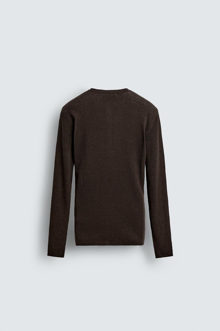 ZARA ЛЕГКИЙ ДЖЕМПЕР С ВОРОТНИКОМ НА ПУГОВИЦАХ, КОРИЧНЕВЫЙ