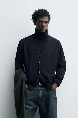 ZARA ЛЕГКИЙ ШЕРСТЯНОЙ КАРДИГАН, МОРСКОЙ ТЕМНО-СИНИЙ