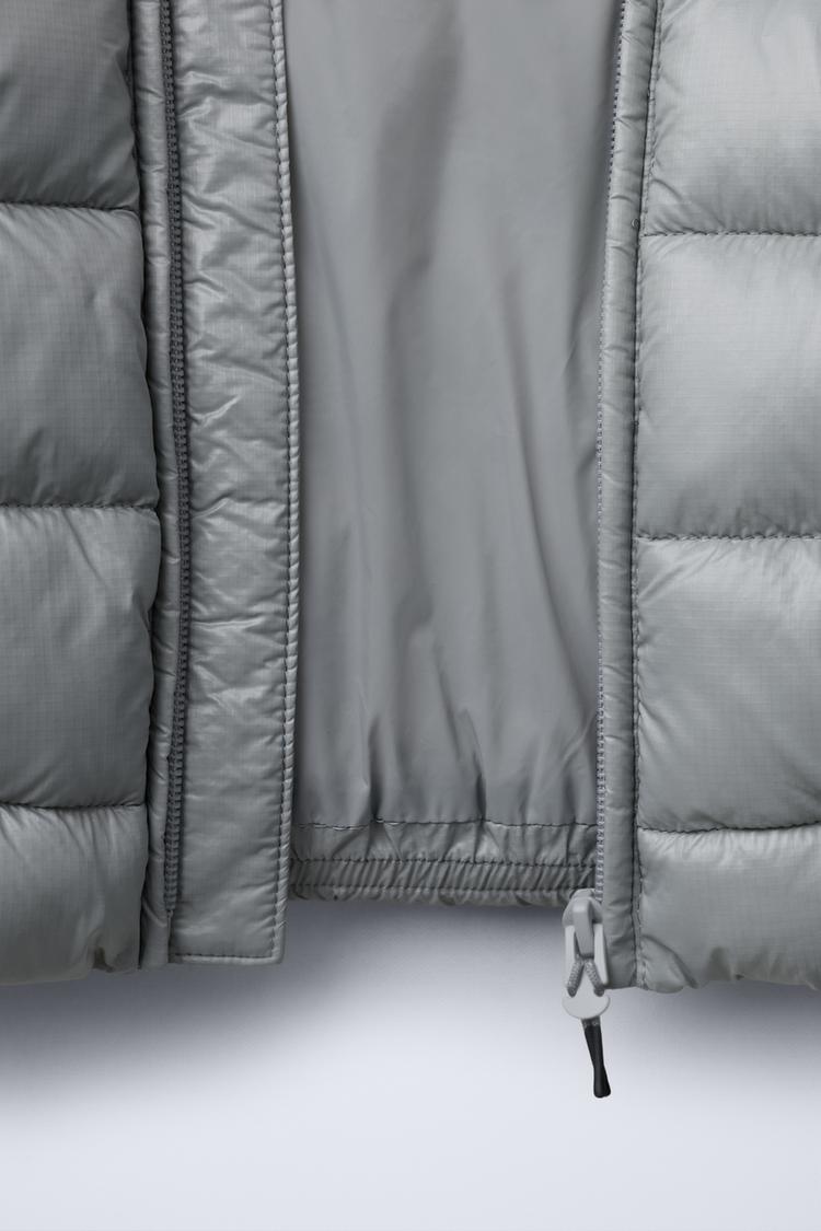Очень легкий жилет с капюшоном. Застежка-молния. Передние карманы на молнии. Надпись на груди.
