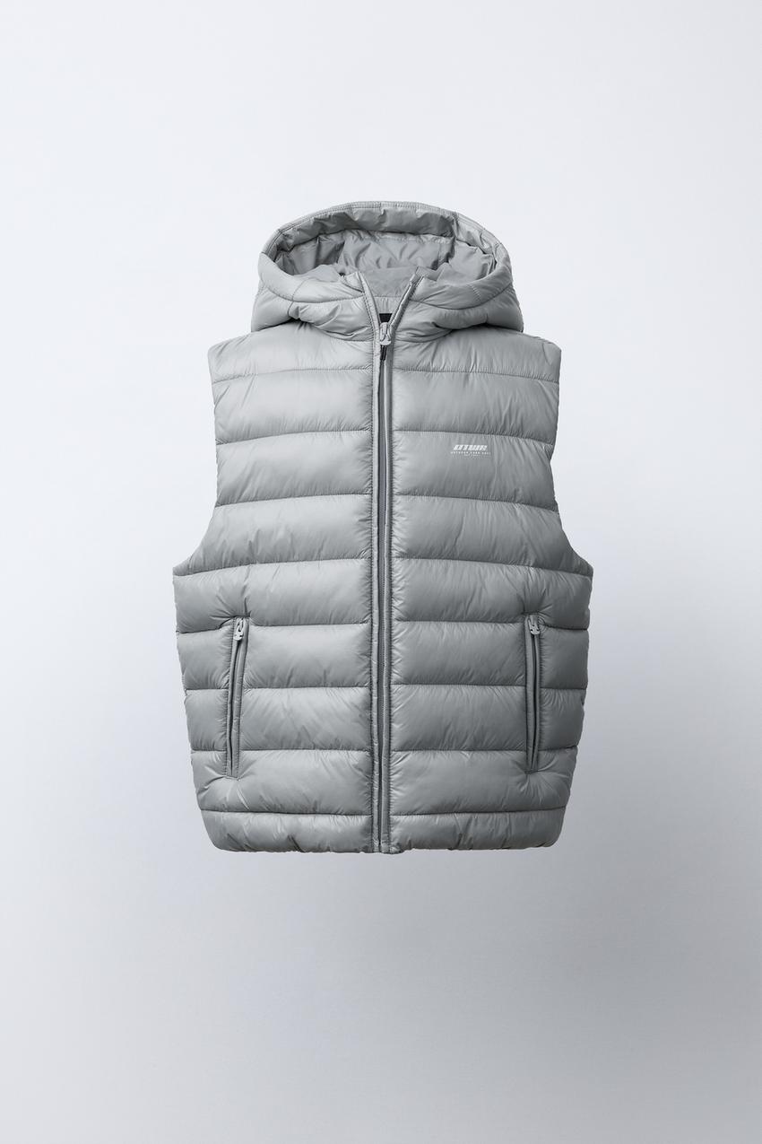 ZARA ЛЕГКИЙ ЖИЛЕТ С НАДПИСЬЮ, СЕРЫЙ