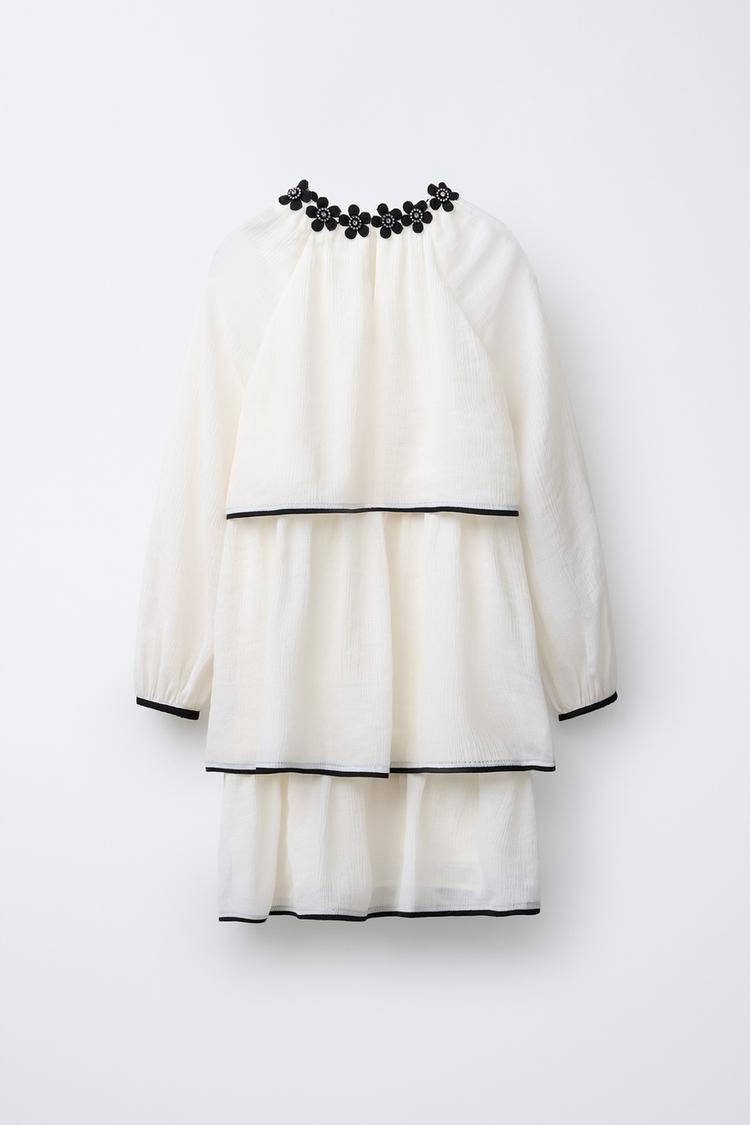 ZARA ЛЕГКОЕ ПЛАТЬЕ С ЦВЕТОЧНЫМ УКРАШЕНИЕМ, ЭКРЮ