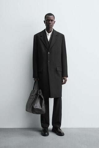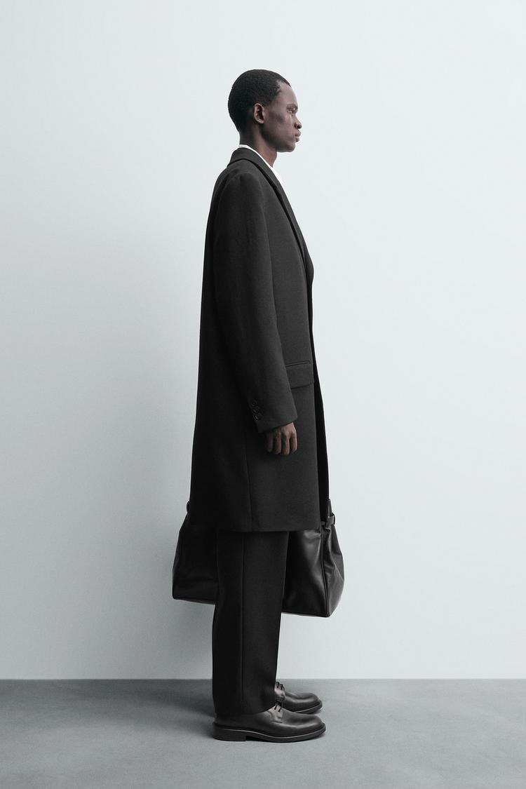 ZARA ЛЕГКОЕ ШЕРСТЯНОЕ ПАЛЬТО, ЧЕРНЫЙ