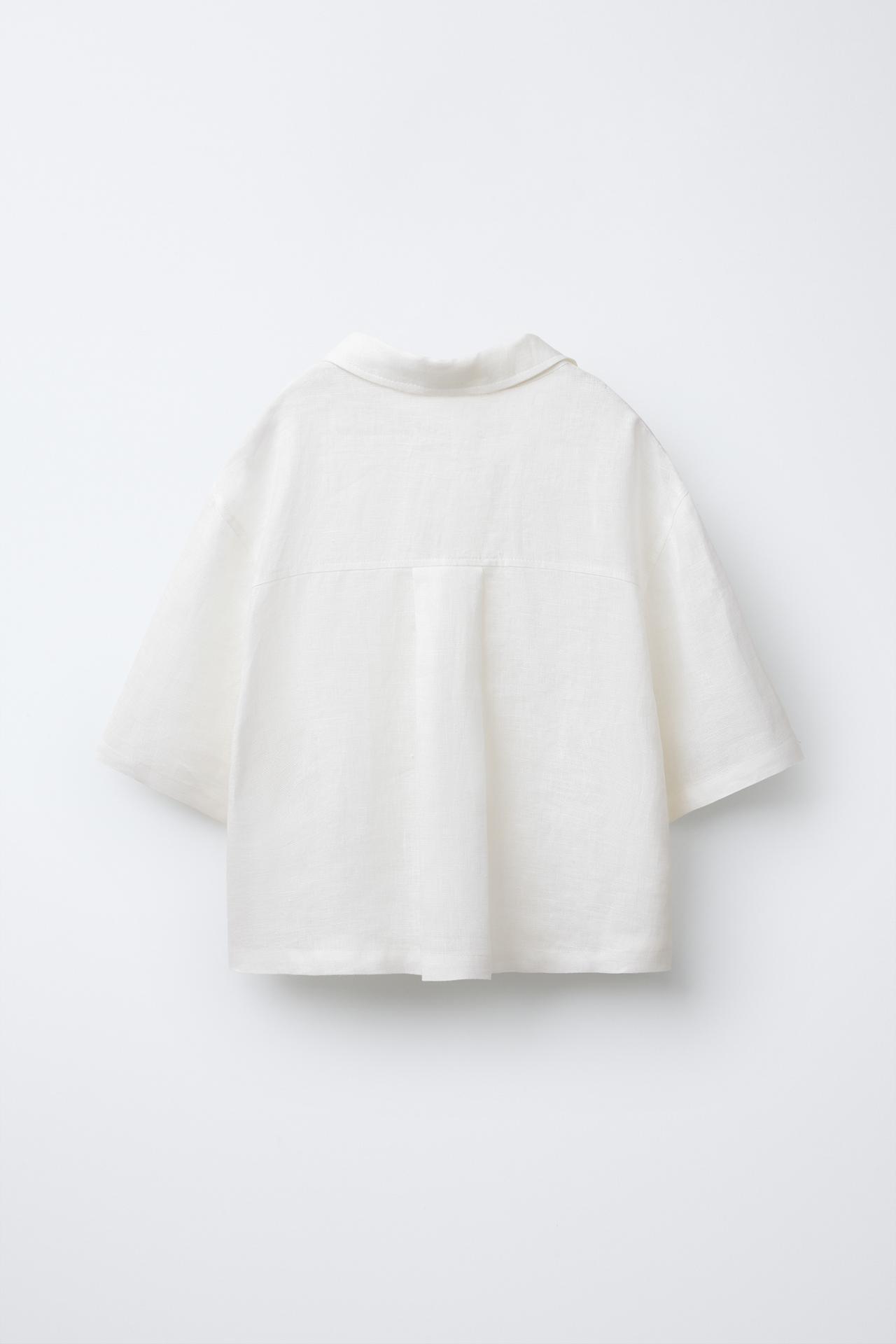 ZARA ЛЬНЯНАЯ РУБАШКА С БЛЕСТЯЩИМИ ПУГОВИЦАМИ, ЖЕЛТОВАТО-БЕЛЫЙ