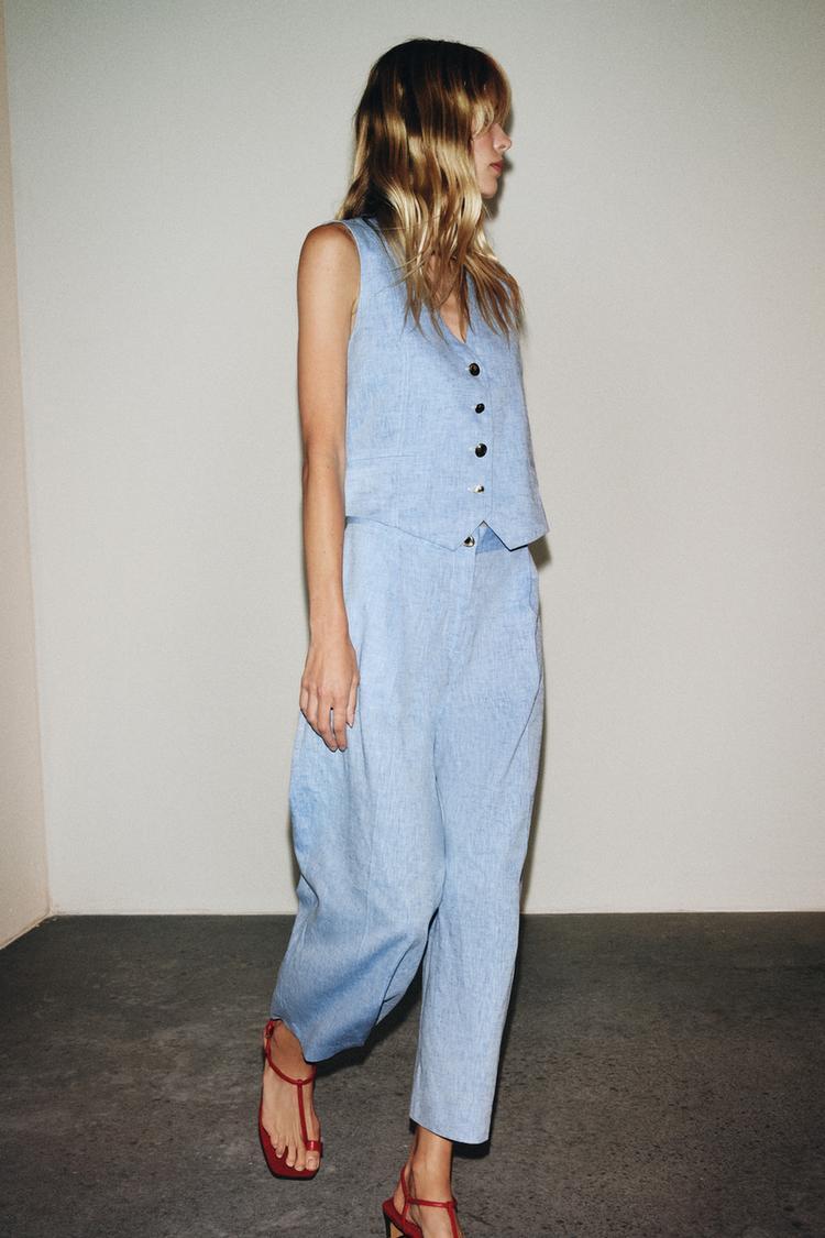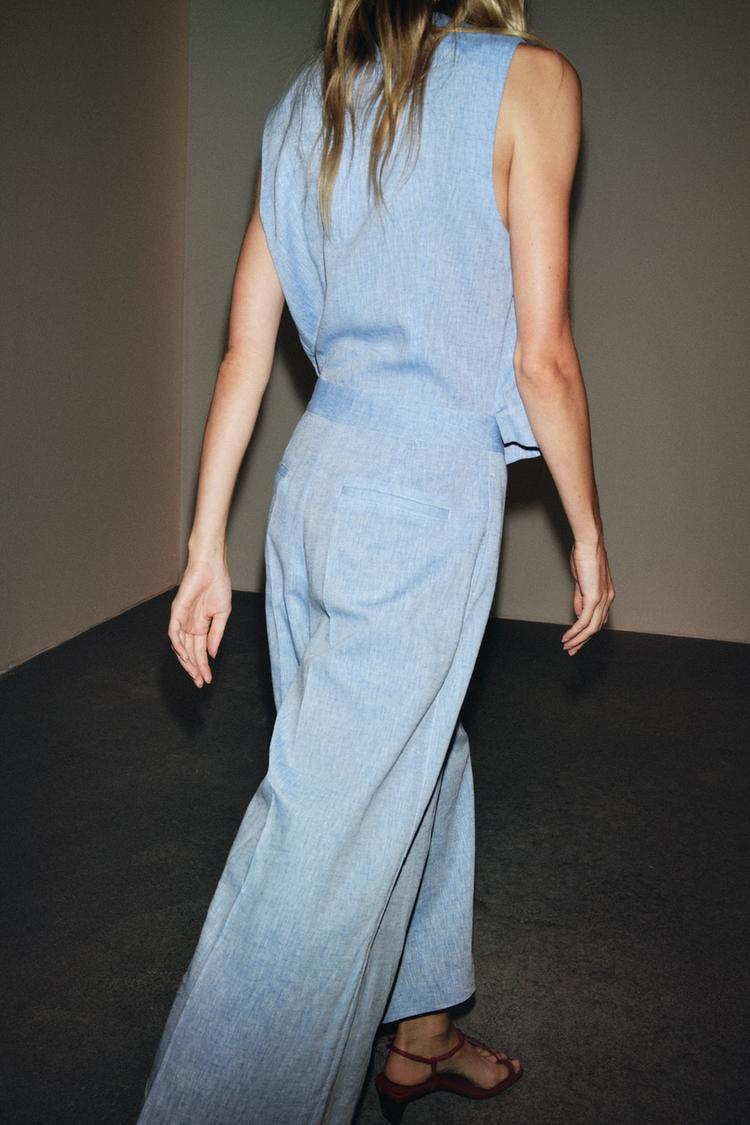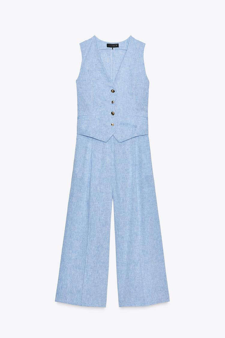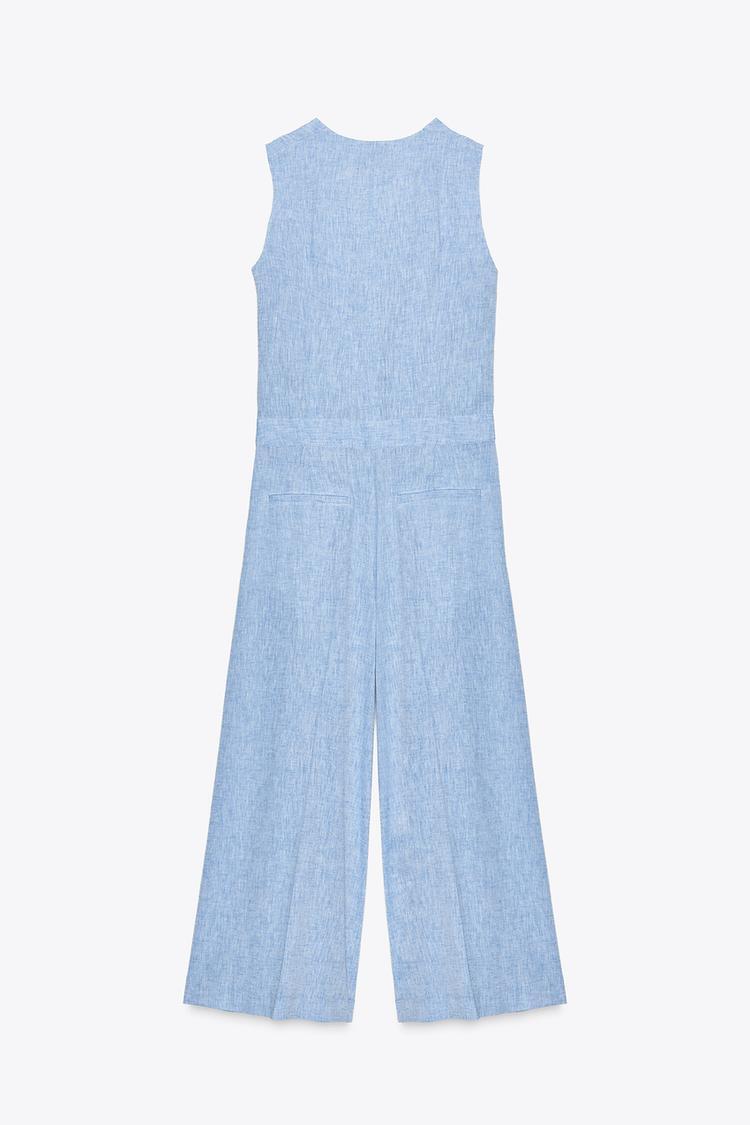 ZARA ЛЬНЯНОЙ КОМБИНЕЗОН-ЖИЛЕТ, ГОЛУБОЙ