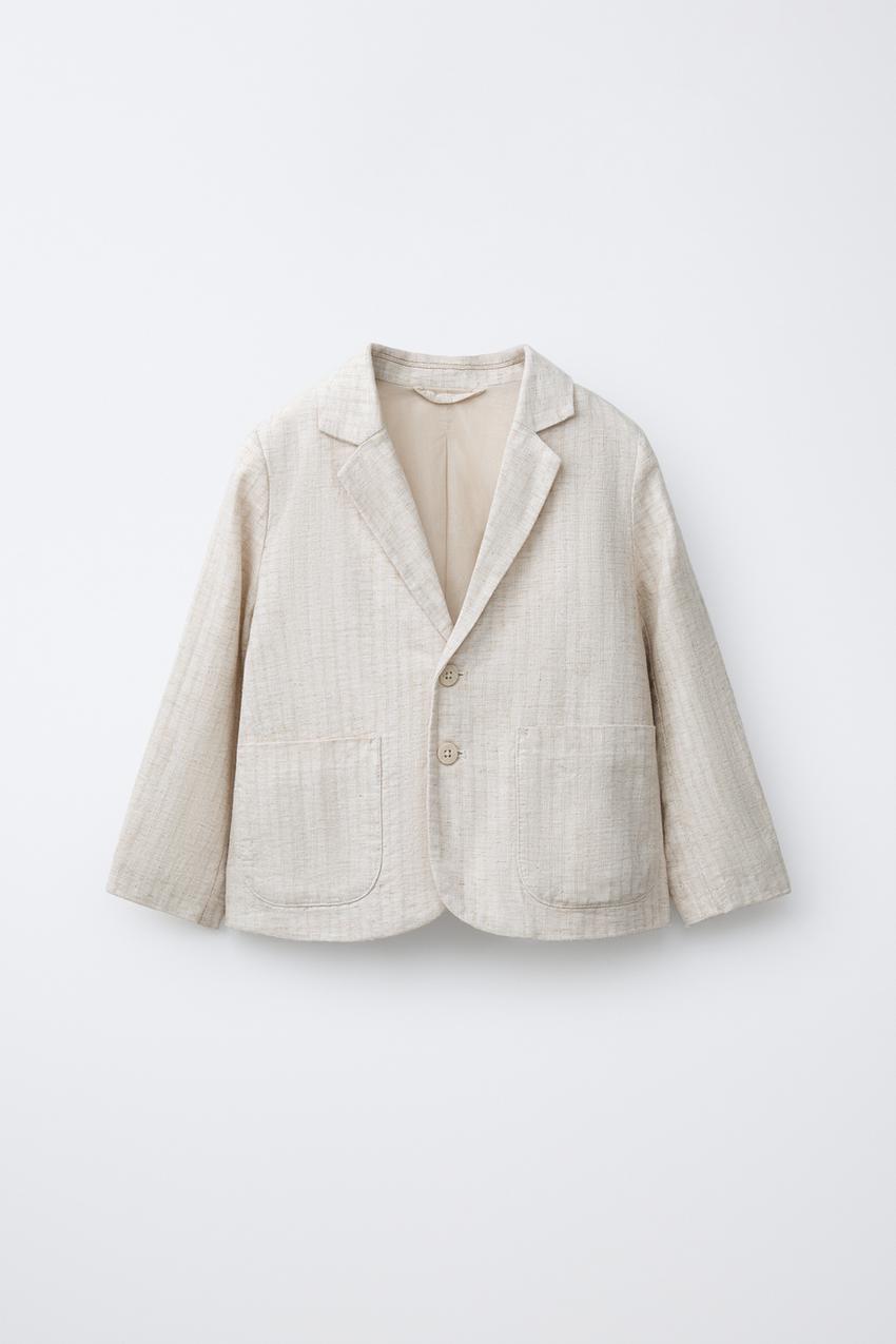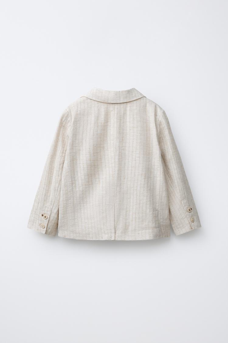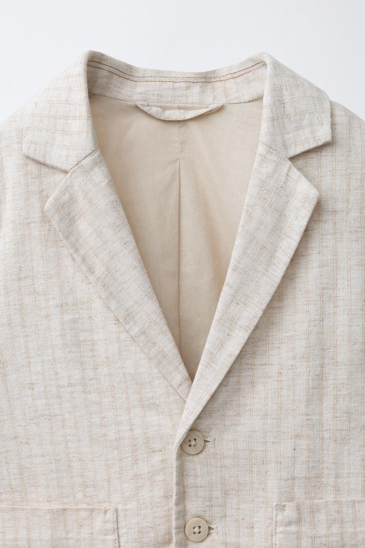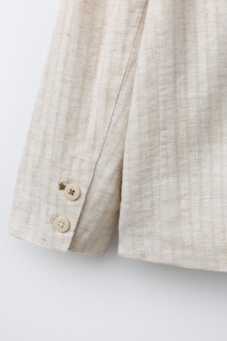 ZARA ЛЬНЯНОЙ ПИДЖАК В ПОЛОСКУ, СВЕТЛО-БЕЖЕВЫЙ