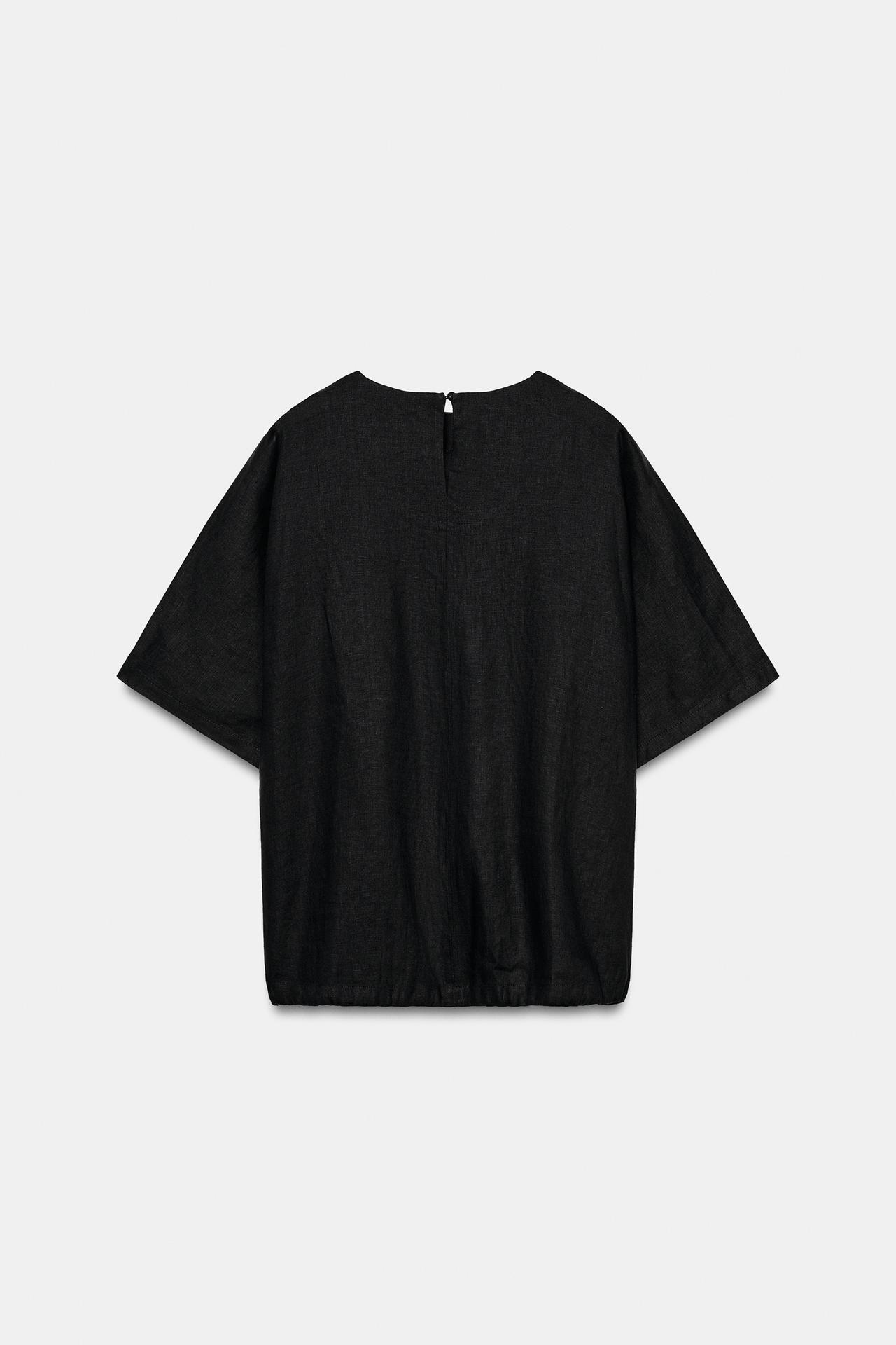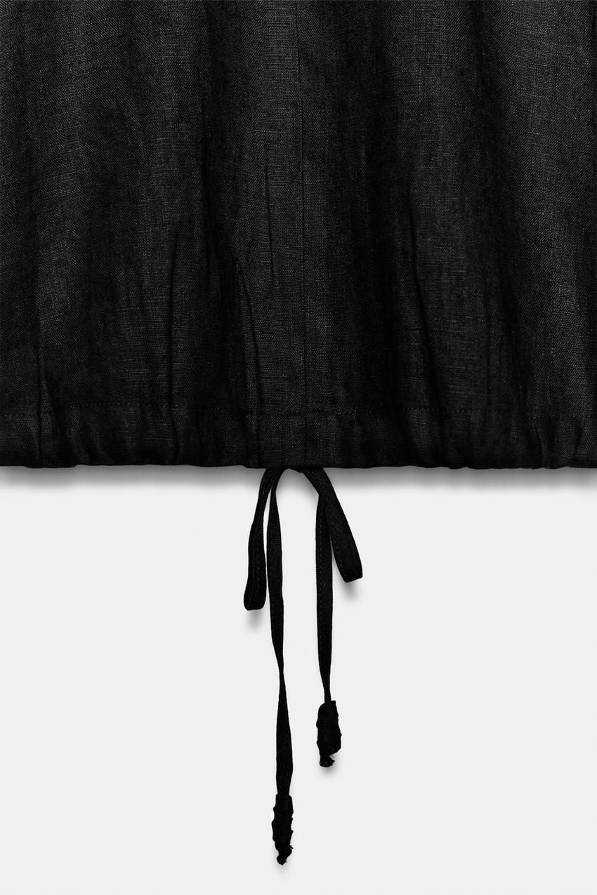 ZARA ЛЬНЯНОЙ ТОП НА ШНУРКАХ — ZW COLLECTION, ЧЕРНЫЙ