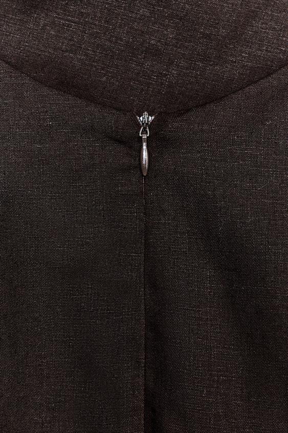 ZARA ЛЬНЯНОЙ ТОП С ГОРЛОВИНОЙ ХАЛТЕР, ТЕМНО-КОРИЧНЕВЫЙ
