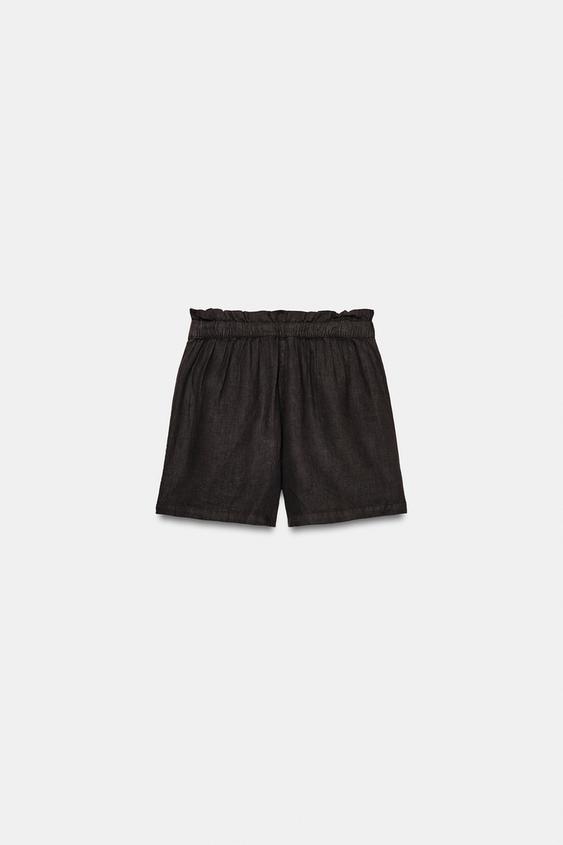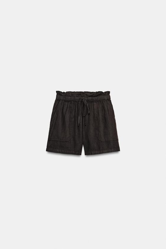ZARA ЛЬНЯНЫЕ ШОРТЫ — ZW COLLECTION, КОРИЧНЕВЫЙ