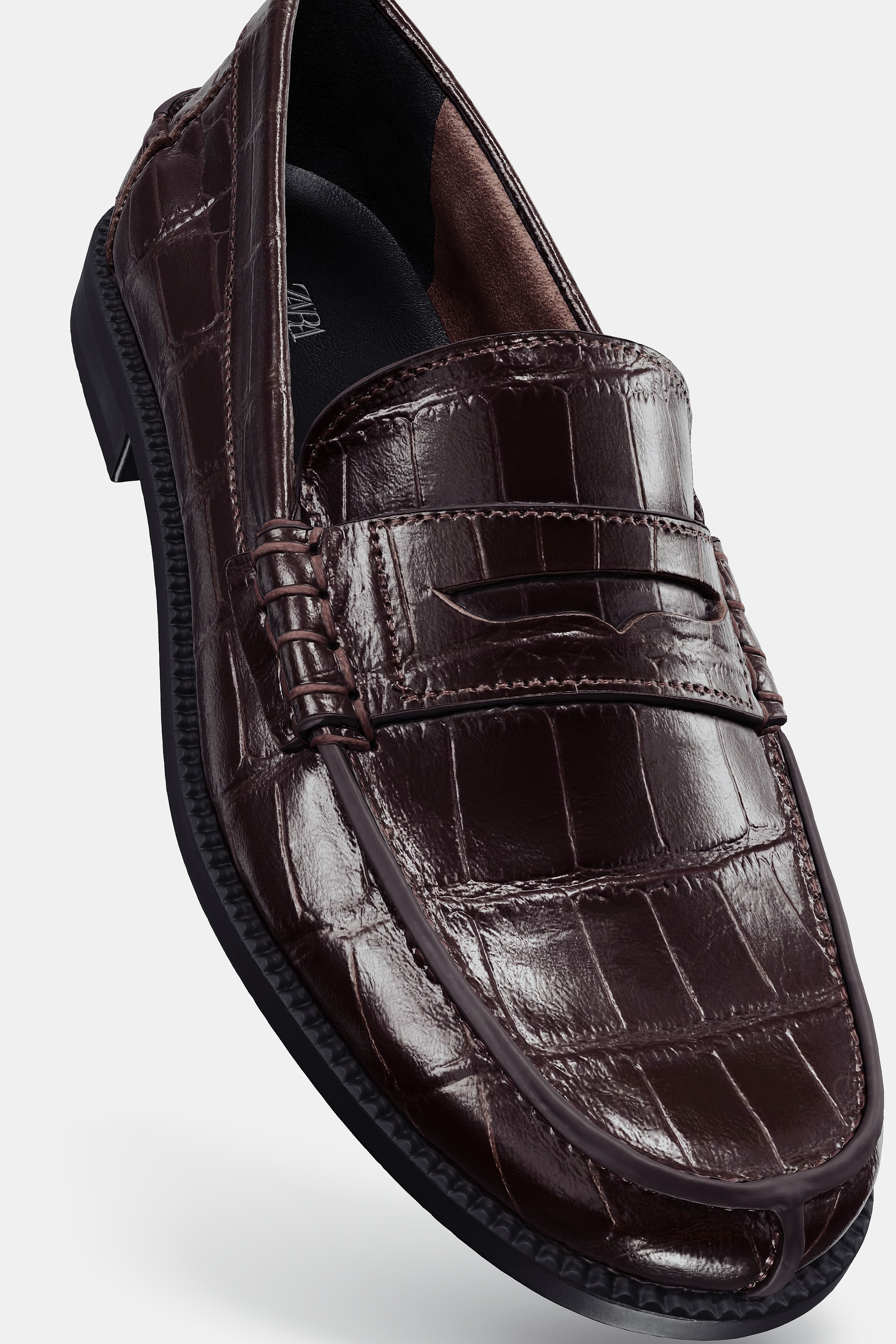 ZARA ЛОФЕРЫ ИЗ ТИСНЕНОЙ КОЖИ, КОРИЧНЕВЫЙ
