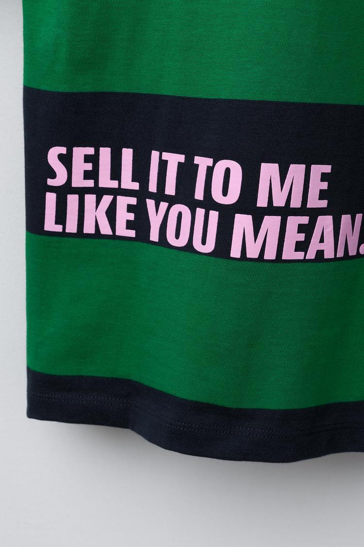ZARA ЛОНГСЛИВ ИЗ ПЛОТНОЙ ТКАНИ В ПОЛОСКУ С НАДПИСЬЮ, ЗЕЛЕНЫЙ