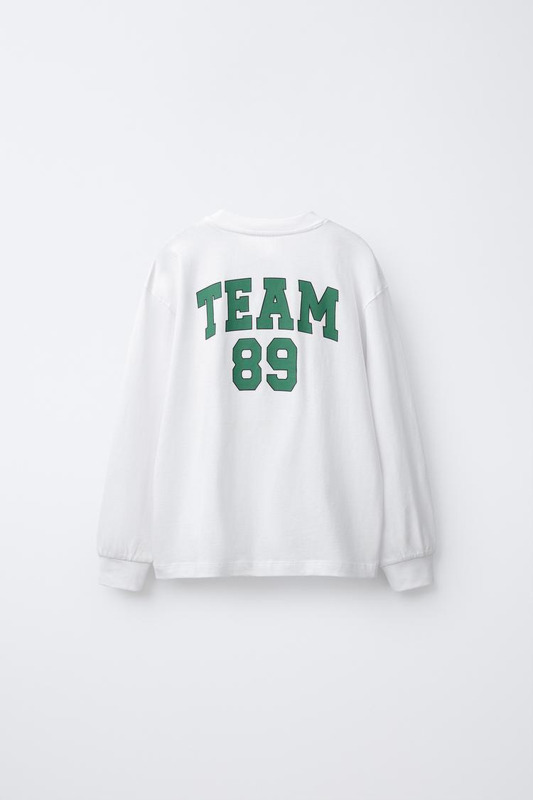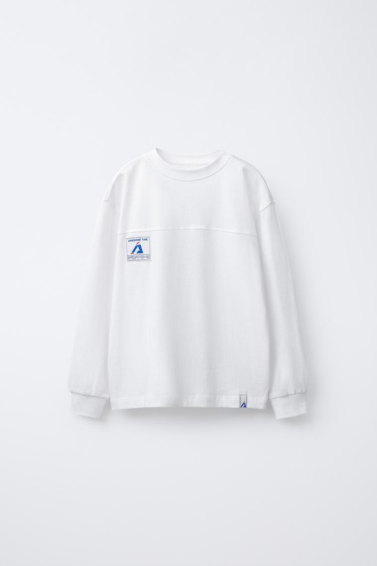 ZARA ЛОНГСЛИВ JOGGING С НАШИВКОЙ, БЕЛЫЙ
