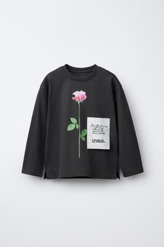 ZARA ЛОНГСЛИВ С ФОТОПРИНТОМ «БАЛЕТ», АНТРАЦИТОВО-СЕРЫЙ