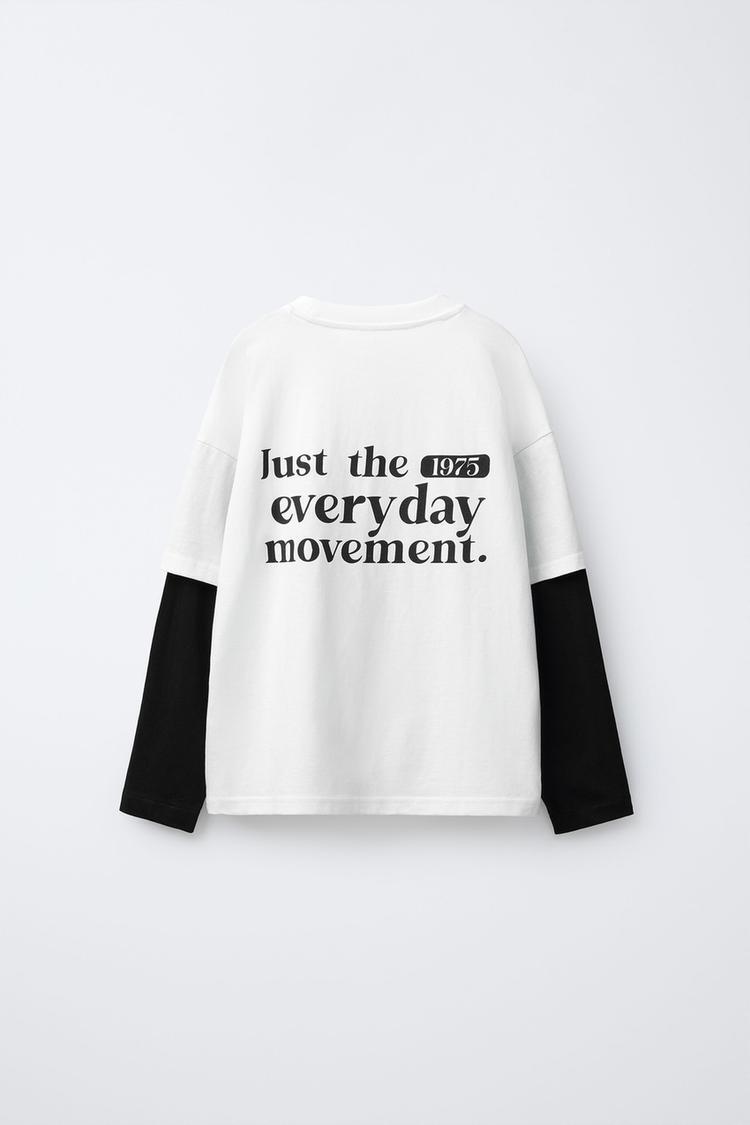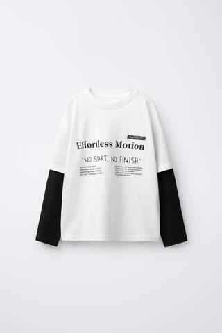 ZARA ЛОНГСЛИВ С НАДПИСЬЮ И ДВОЙНЫМИ РУКАВАМИ, БЕЛЫЙ