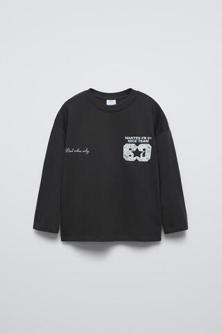 ZARA ЛОНГСЛИВ С НАДПИСЬЮ И ПРИНТОМ «ЦИФРЫ», АНТРАЦИТОВО-СЕРЫЙ