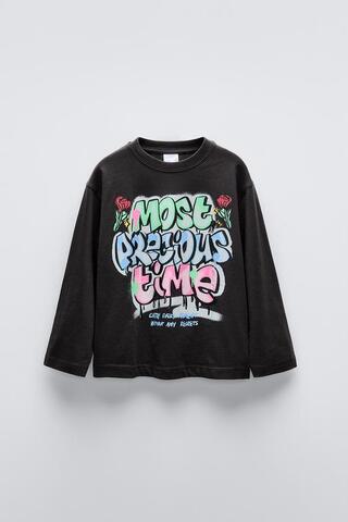 ZARA ЛОНГСЛИВ С ПРИНТОМ «ГРАФФИТИ», СЕРЫЙ