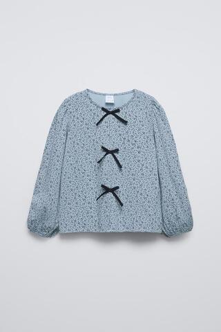 ZARA ЛОНГСЛИВ С ПРИНТОМ И БАНТАМИ, СИНИЙ