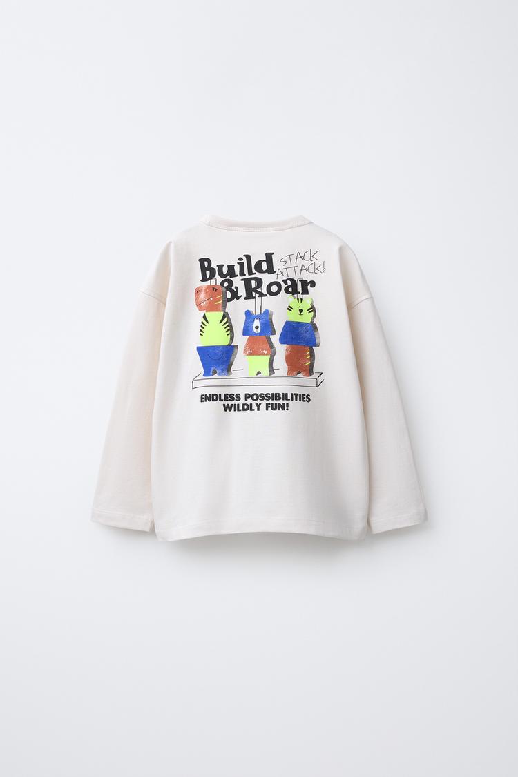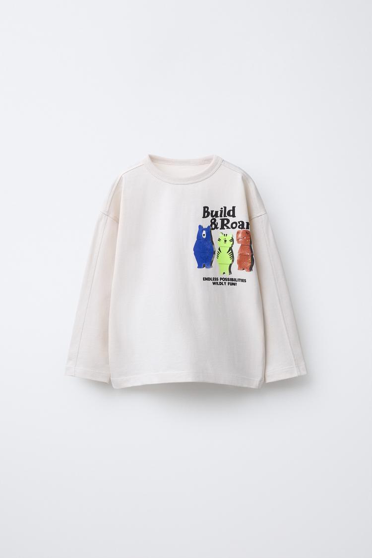 ZARA ЛОНГСЛИВ С ПРИНТОМ «МИШКИ», ЭКРЮ