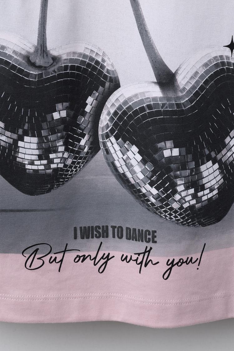 Футболка с круглым вырезом и длинными рукавами. Принт с вишнями спереди и сзади. Ткань 100% хлопок.