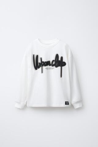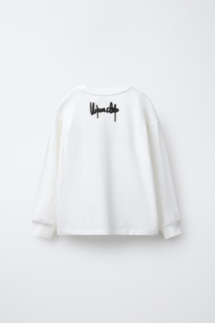ZARA ЛОНГСЛИВ С РЕЛЬЕФНЫМ ТЕКСТОМ, ЖЕЛТОВАТО-БЕЛЫЙ