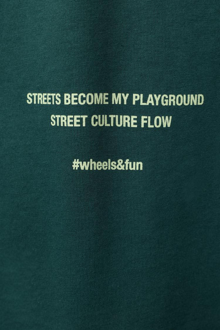 ZARA ЛОНГСЛИВ С ТЕКСТОВЫМ ПРИНТОМ, ЗЕЛЕНЫЙ