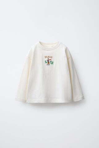 ZARA ЛОНГСЛИВ С ВЫШИВКОЙ, ЭКРЮ