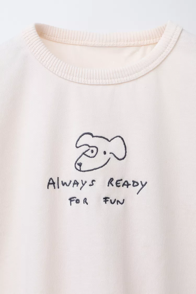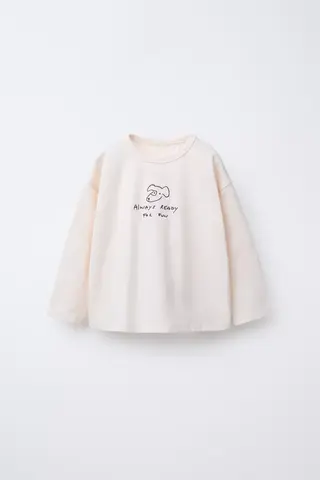 ZARA ЛОНГСЛИВ С ВЫШИВКОЙ, ЦВЕТ СЛОНОВОЙ КОСТИ