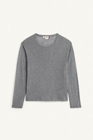 Трикотажная футболка свободного кроя с длинным рукавом из смеси лиоцелла и шерсти. С круглым вырезом.