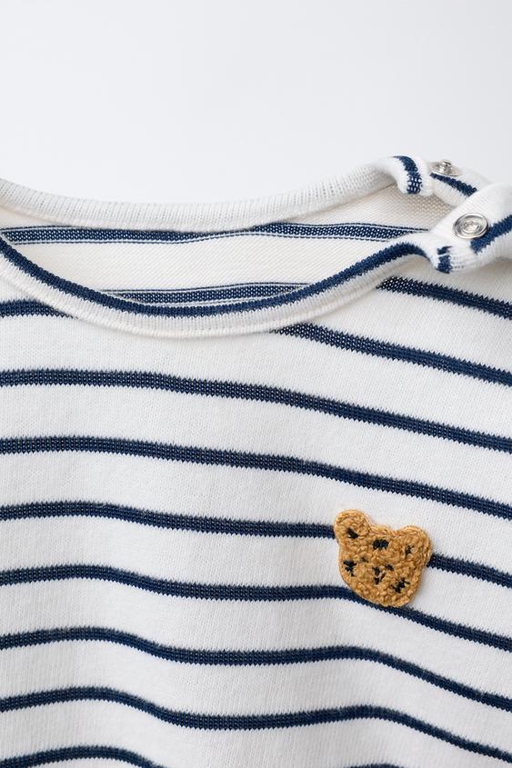 ZARA ЛОНГСЛИВ В ПОЛОСКУ С НАШИВКОЙ «ТИГР», МОРСКОЙ СИНИЙ
