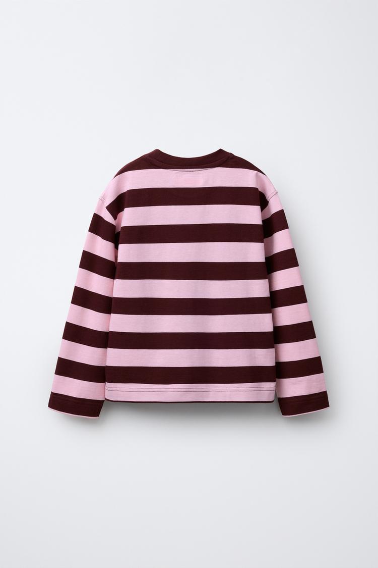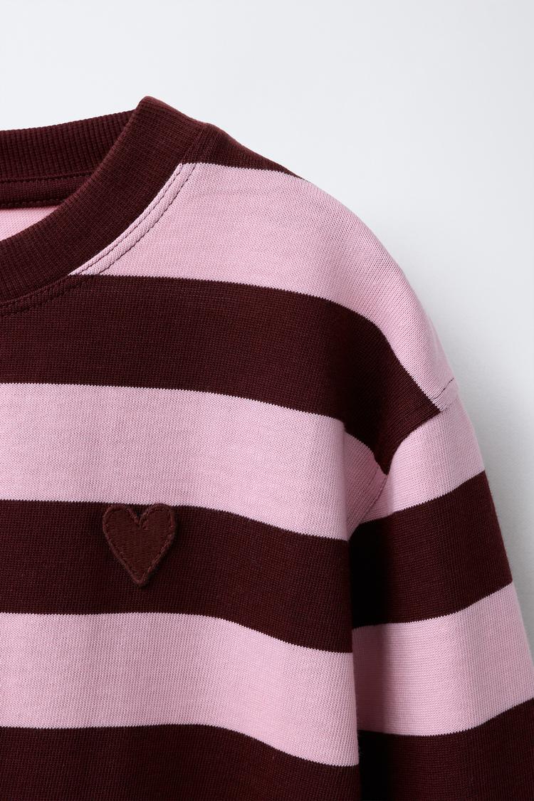 ZARA ЛОНГСЛИВ В ПОЛОСКУ С ВЫШИТЫМ СЕРДЦЕМ, РОЗОВЫЙ