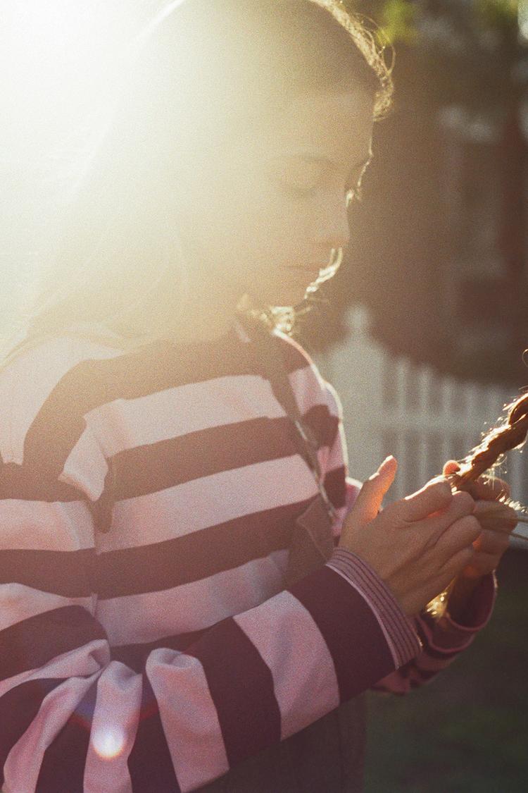 Футболка с круглым вырезом и длинными рукавами. Полосатый принт. Декоративная вышивка в виде сердца на груди.