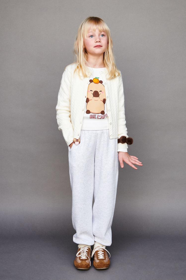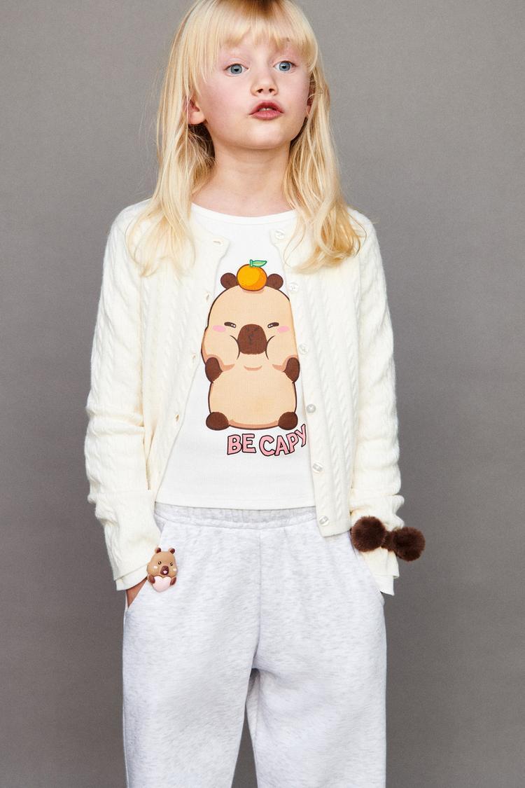 ZARA ЛОНГСЛИВ В РУБЧИК С ПРИНТОМ «КАПИБАРА CAPYFUN ©», БЕЛЫЙ