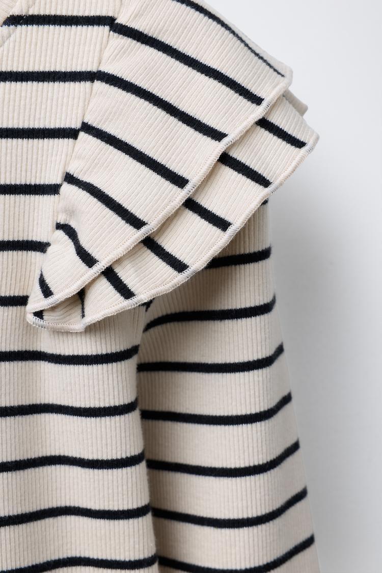 ZARA ЛОНГСЛИВ В РУБЧИК В ПОЛОСКУ С ВОЛАНАМИ, ПОЛОСКИ