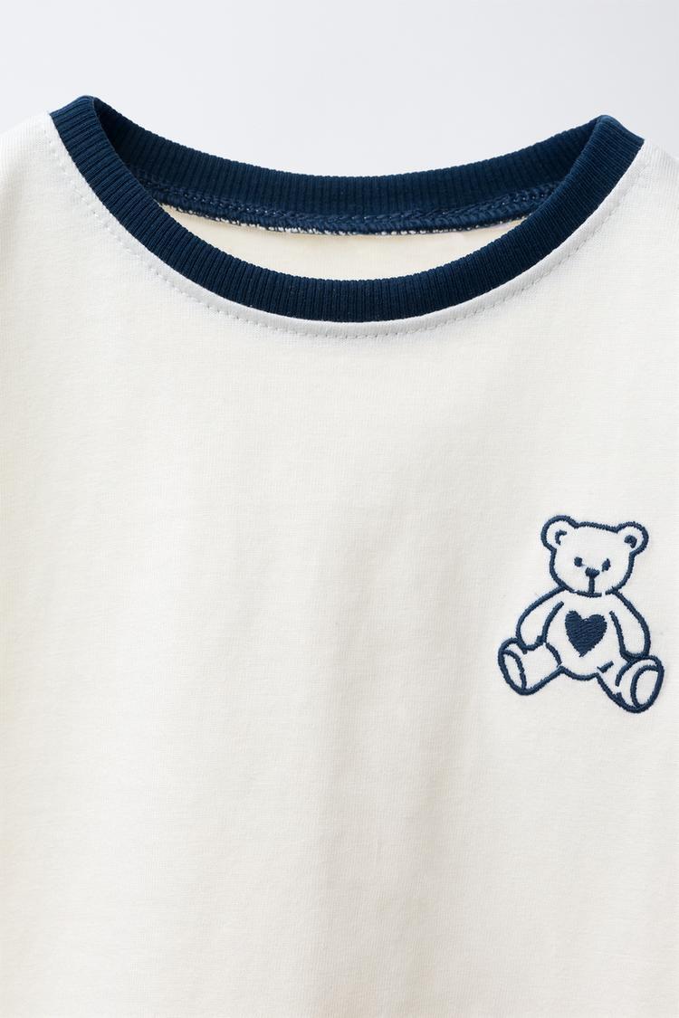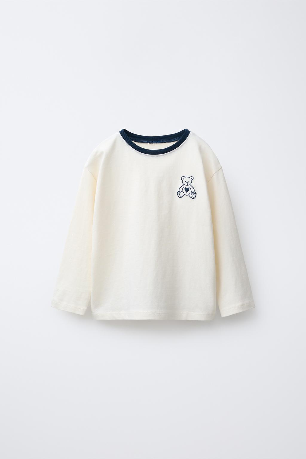 Футболка с круглым вырезом и длинными рукавами. Вышитый медведь на груди. Ткань: 100% хлопок.