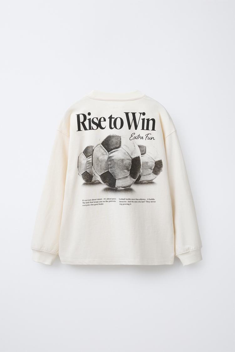 ZARA ЛОНГСЛИВС ПРИНТОМ «СПОРТ», ЭКРЮ