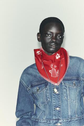 ZARA МАКСИ-БАНДАНА С ВЫШИВКОЙ, КРАСНЫЙ