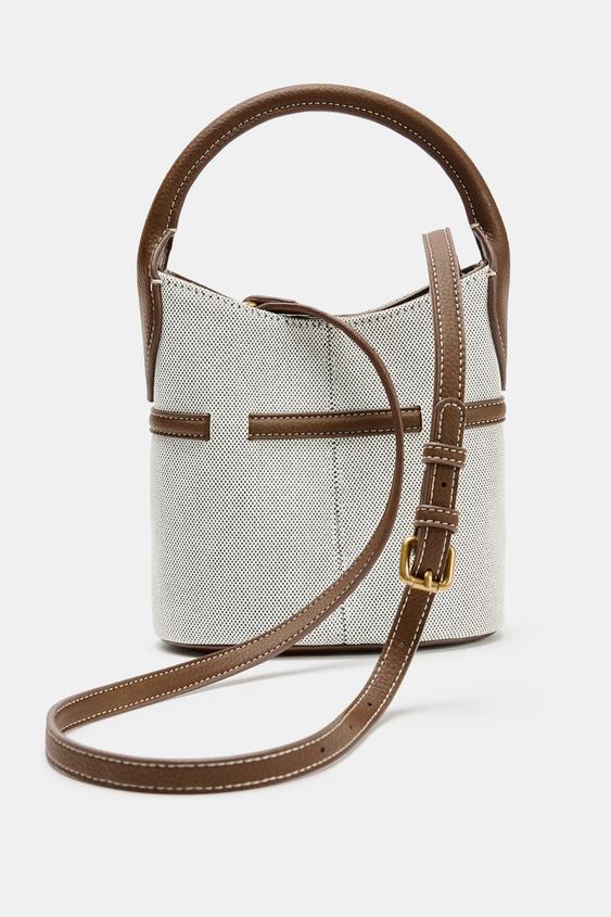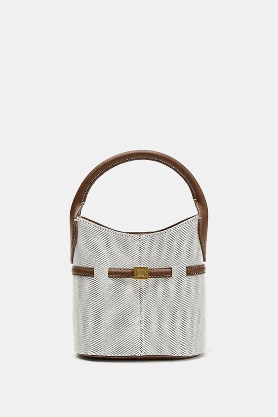 ZARA МАЛЕНЬКАЯ ХОЛЩОВАЯ СУМКА-МЕШОК С ПРЯЖКОЙ, СВЕТЛО-БЕЖЕВЫЙ