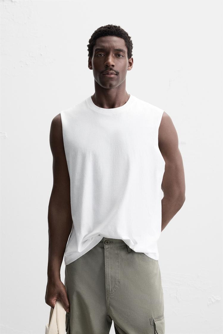 ZARA МАЙКА ИЗ ХЛОПКА, БЕЛЫЙ
