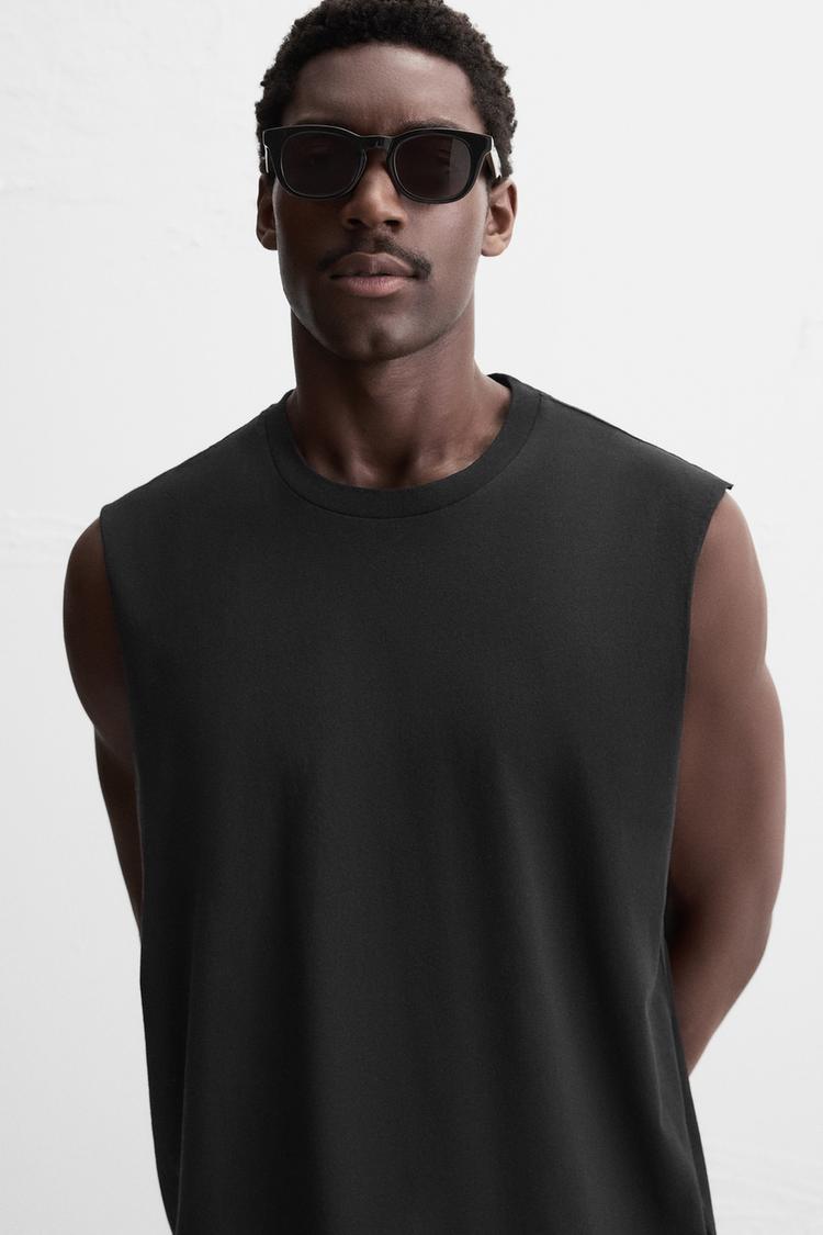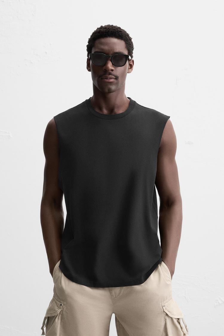 ZARA МАЙКА ИЗ ХЛОПКА, ЧЕРНЫЙ