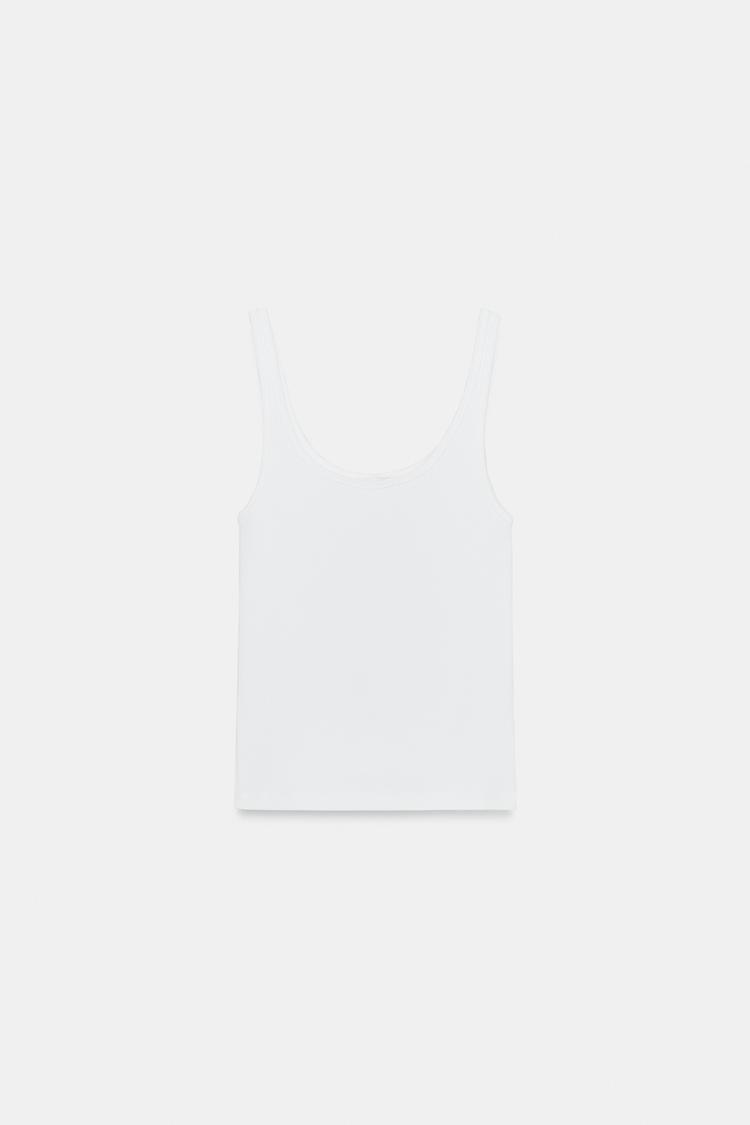 ZARA МАЙКА НА БРЕТЕЛЯХ, БЕЛЫЙ