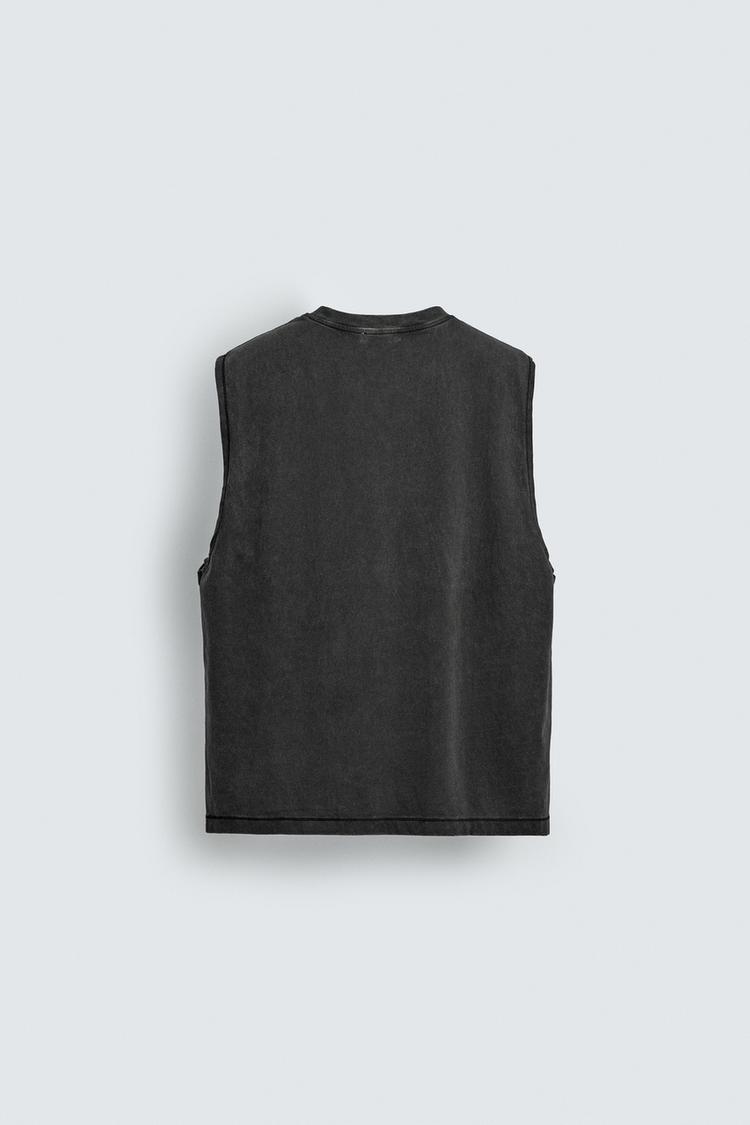 ZARA МАЙКА С ЭФФЕКТОМ ПОТЕРТОСТИ, ТЕМНЫЙ АНТРАЦИТ