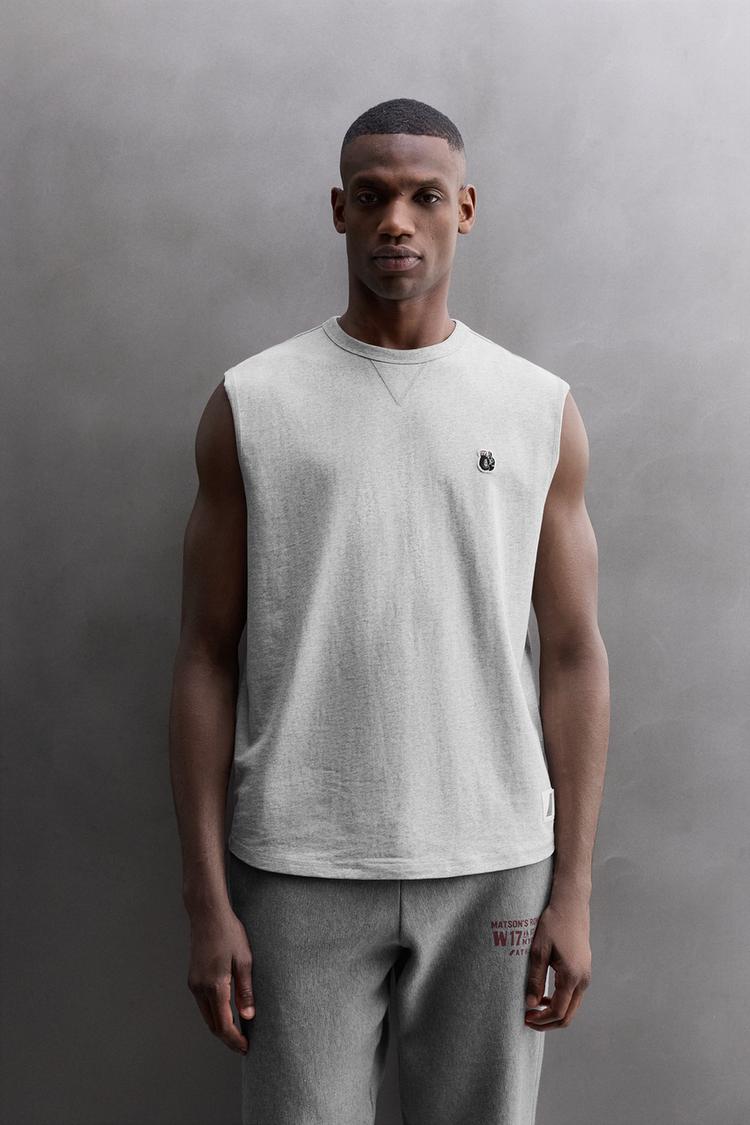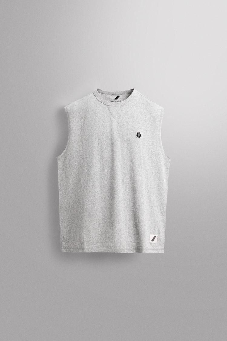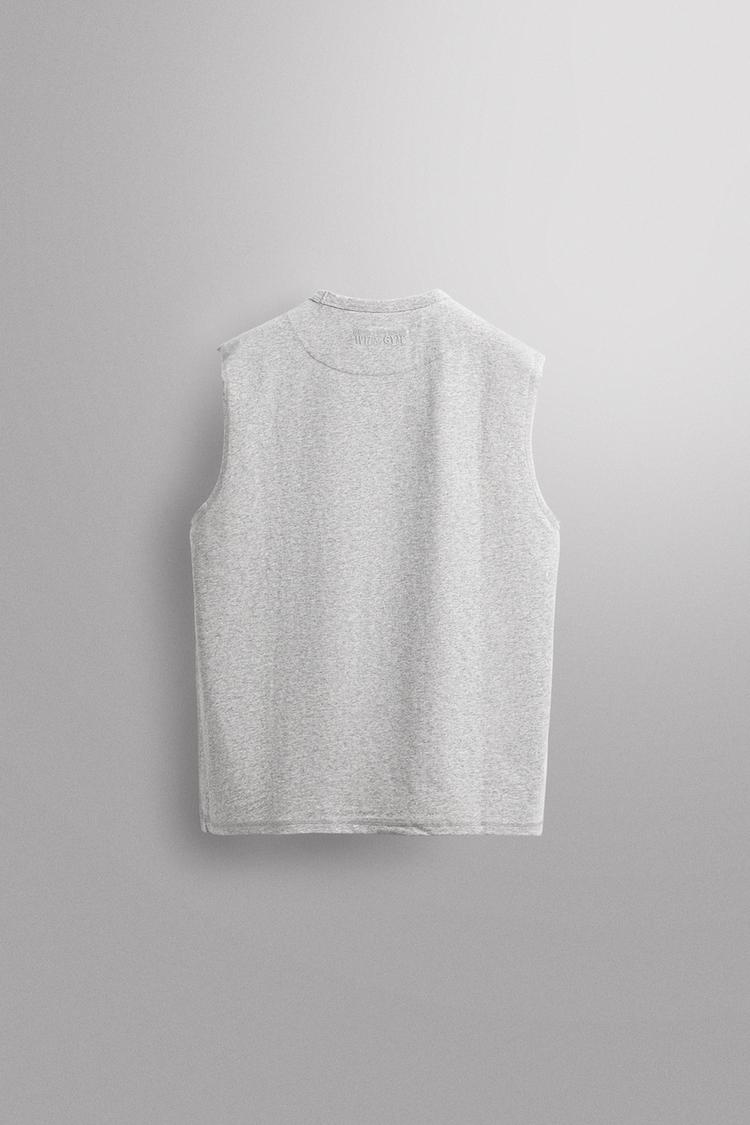 ZARA МАЙКА С ВЫШИВКОЙ, СЕРЫЙ МЕЛАНЖ