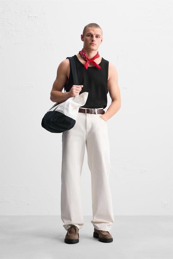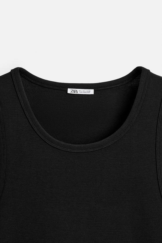 ZARA МАЙКА В РУБЧИК, ЧЕРНЫЙ